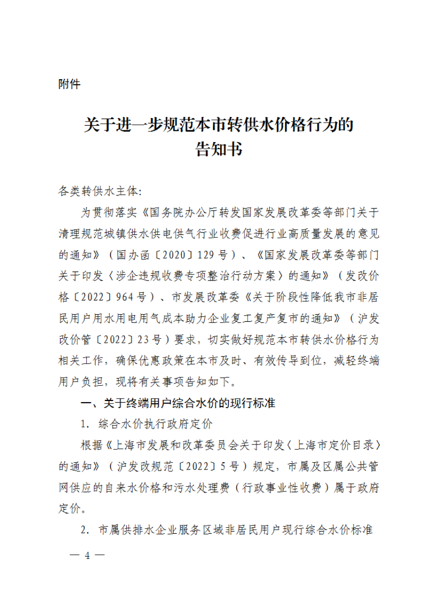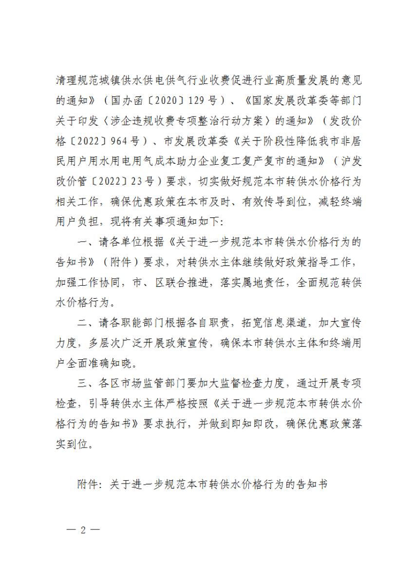 关于进一步规范本市转供水价格行为的通知