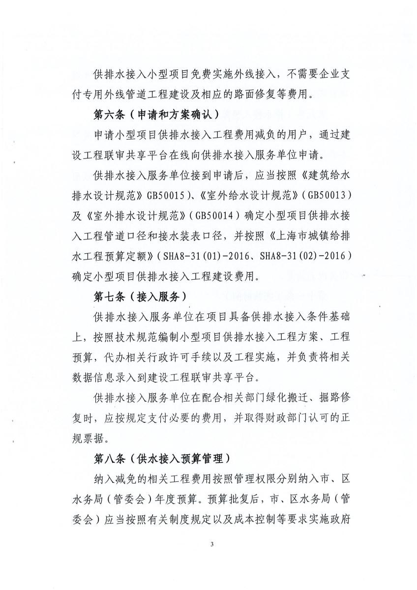 上海市水务局上海市财政局关于印发《上海市小型项目供排水接入工程费用减负实施细则》的通知