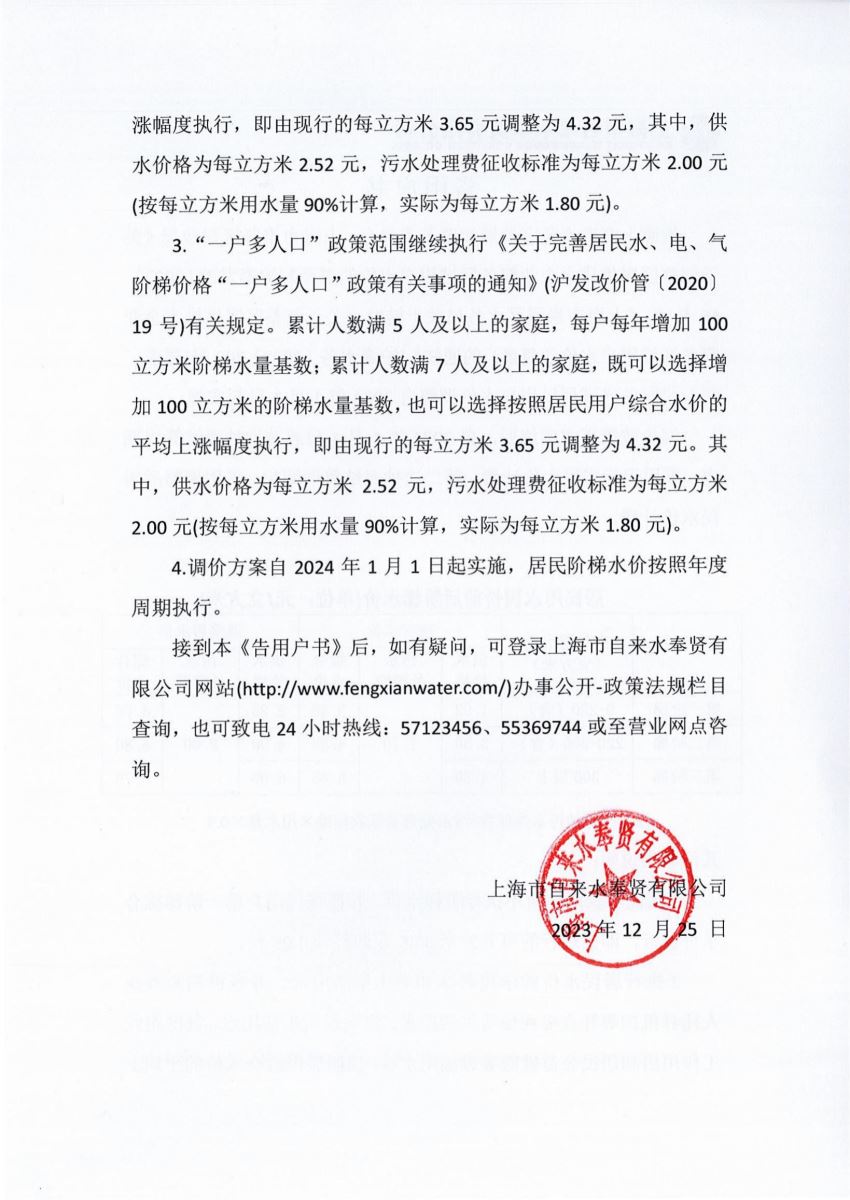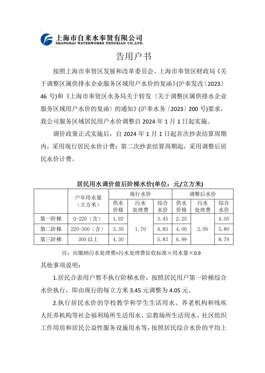 居民调价告用户书